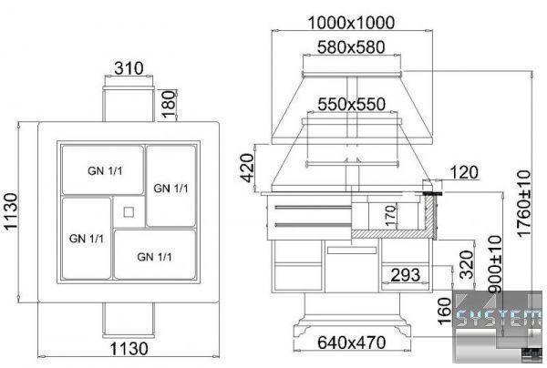 | Габаритные размеры стола/витрины [мм]: | 1130x1130x1370 |