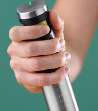 Чем сильнее нажимается кнопка, тем больше скорость вращения лопасти – бесступенчатая регулировка скорости обеспечивает лучший контроль над процессом смешения.