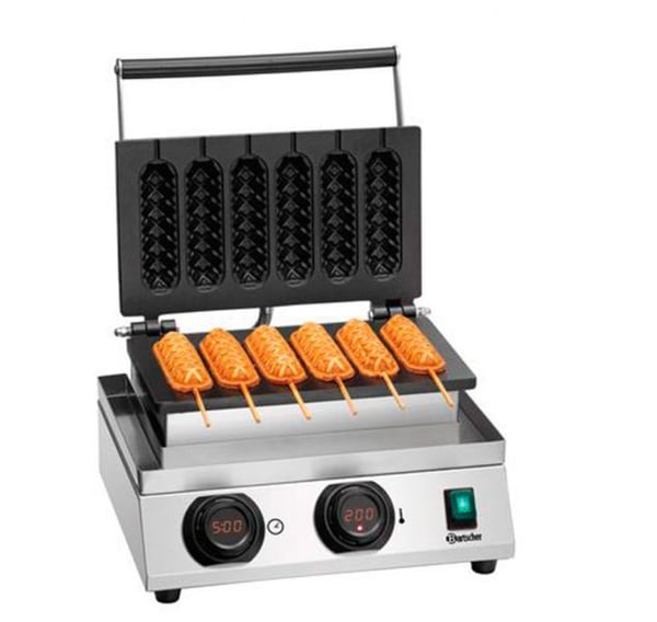 Корн-дог - это оригинальный способ приготовления сосисок на палочке, которые запекаются в фигурном тесте. Аппарат корн-дог используют в ресторанах, местах торговли, кафе и фаст-фуд заведениях для выпекания сосисок в тесте, а также десертов - вафли на палочке с фруктовой начинкой.