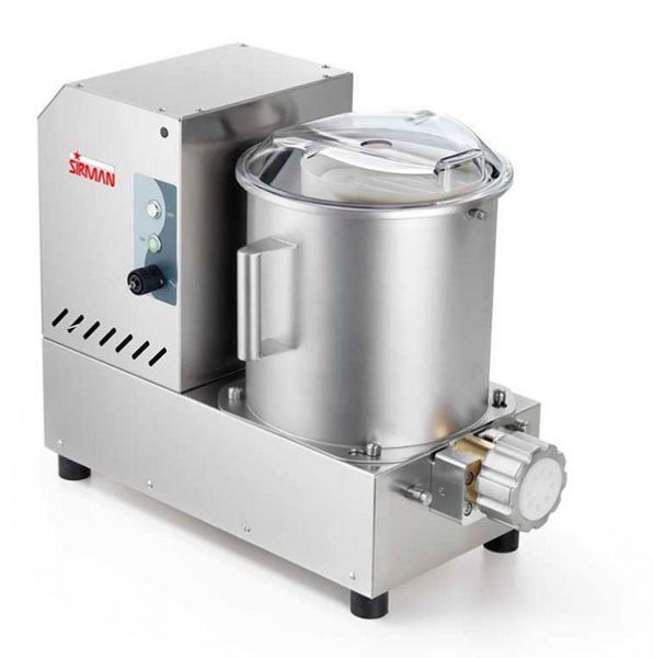 Спираль выполнена из высококачественной пищевой нержавеющей стали, головка экструдера – из бронзы и никеля. Дежа и спираль легко снимаются для очистки и дезинфекции, крышка машины с блокирующим защитным выключателем.