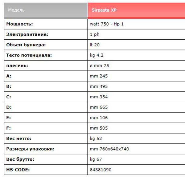 С помощью простой замены фильер можно экструдировать спагетти, тальятелле, маккерони, фузилли, равиоли различной формы и многие другие виды пасты - насадки (матрицы) приобретаются также отдельно.