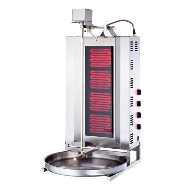 Аппарат для шаурмы - это электрический гриль, который предназначен для обжаривания мясного филе на вертикальном шампуре.
