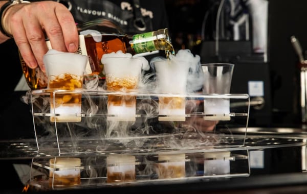 - Когда напиток наливается в стакан, он взаимодействует с сухим льдом, и производит дымный эффект.