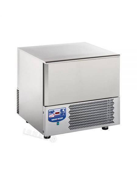 Благодаря резкому снижению температуры, сохраняется естественный запах продукта или уже готового блюда. Аппарат сделан из нержавеющей стали, имеет электронную панель управления, внутри устанавливаются семь гастроемкостей GN 1/2.