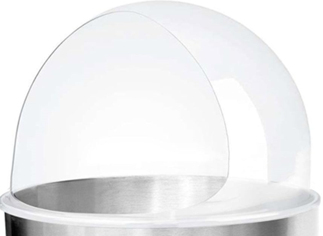 Аппарат для приготовления сахарной ваты оснащен кожухом-уловителем, защищающим от брызг или пыли.
