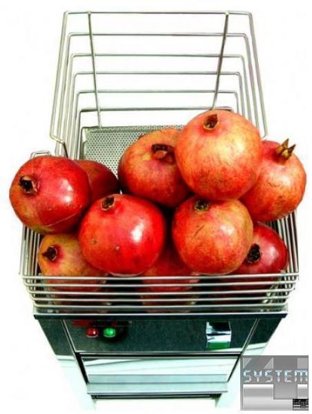 Быстро и эффективно отожмёт сок из граната и самых крупных грейфрутов. Благодаря тому, что фрукты загружаются вручную, можно отжать крупные плоды, с которыми другие соковыжималки не могут справиться из-за размеров.Извлекает намного больше сока, чем при их отжиме любым другим способом. Процесс отжима и фильтрации сока занимает приблизительно 7 секунд (вне зависимости от того какой фрукт отжимаете). ZumoNat имеет два сигнальных индикатора, которые информируют о процессе работы: зеленый индикатор указывает на то, что машина готова к работе, красный сообщает, что идет процесс отжима. Как только фрукты загружены, достаточно нажать кнопку «Старт», чтобы машина начала работать. Если в момент отжима открыть крышку, то пресс будет немедленно остановлен автоматически. Машина легко обслуживается. Для того чтобы помыть пресс в конце рабочего дня достаточно пяти минут.