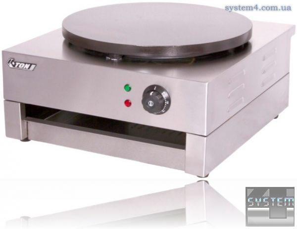 Блинницы предназначены для жарки блинов. Модели блинниц могут иметь одну или две рабочие поверхности. Рабочая поверхность электроблинницы выполняется из чугуна со специальным покрытием или из стали и позволяет жарить с минимальным количеством жира. Терморегулятор электроблинницы позволяет устанавливать температуру от 0 до 300 ºС. Нагревание и подпекание блинчиков происходит равномерно по всей рабочей поверхности конфорки. При подключении электрической блинницы необходима подводка электричества напряжением 220 или 380 В и мощностью от 3-х до 6 -и кВт, что зависит, в первую очередь, от производителя и количества конфорок.