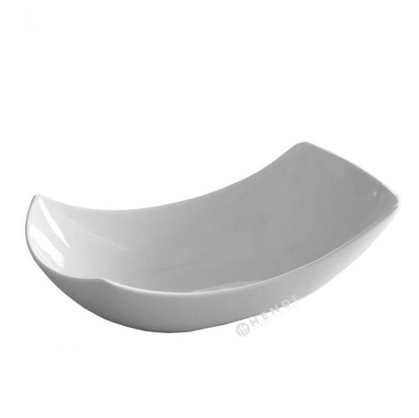Блюдо изготовлено из крепкого белого фарфора. Имеет "U"- образную форму.