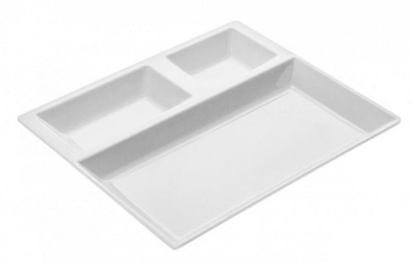 Трехсекционное меламиновое блюдо предназначено для сервировки стола, идеально подойдет для выкладки гастрономии в ресторанах и гостиницах.