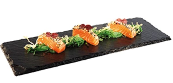Прямоугольное блюдо используют для подачи холодных и горячих блюд - десертов, закусок, суши.