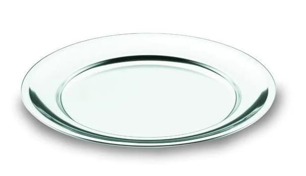 Блюдо круглой формы изготовлено из высококачественной нержавеющей стали, которой храрактерна устойчивость к процессам коррозии, имеет глянцевую поверхность с гладкой каймой.