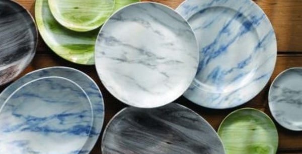 Мраморная поверхность посуды передает богатую глубину цвета и оттенка. Идеально подойдет для оригинальной и необычной подачи еды в ресторанах премиум - класса. А именно - блюд из рыбы и мяса.