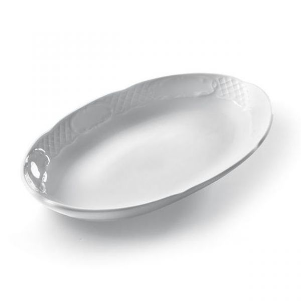 Блюдо овальное, изготовлена из ударопрочного белого фарфора. Усиленные края, глазурь высокого качества. Можно использовать в микроволновых печах и мыть в посудомоечных машинах.