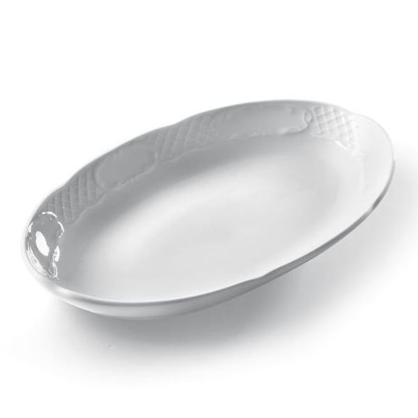 Блюдо овальное, изготовлена из ударопрочного белого фарфора. Усиленные края, глазурь высокого качества.