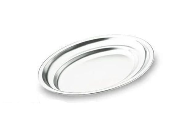 Блюдо для мяса овальной формы изготовлено из высококачественной нержавеющей стали, которой храрактерна устойчивость к процессам коррозии, имеет глянцевую поверхность с гладкой каймой.