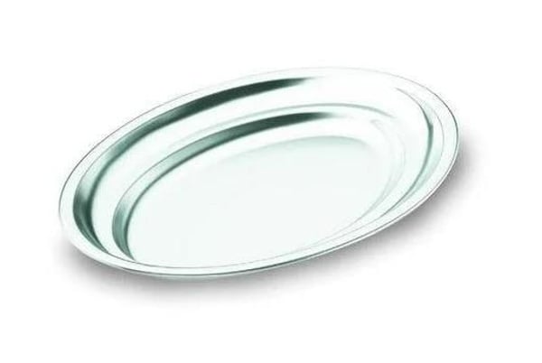 Блюдо для мяса овальной формы изготовлено из высококачественной нержавеющей стали, которой характерна устойчивость к процессам коррозии, имеет глянцевую поверхность с гладкой каймой.