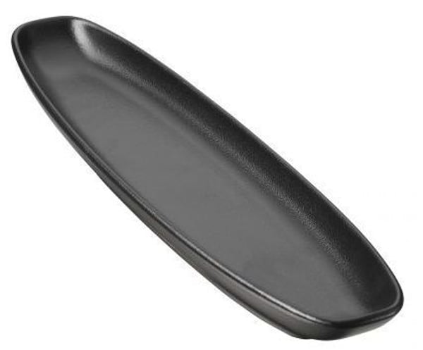 Длинное блюдо сделано в классическом черном цвете, который придает ему изысканности и элегантности.