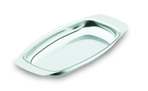 Блюдо для подчаи нарезки изготовлено из высококачественной нержавеющей стали, которой храрактерна устойчивость к процессам коррозии, имеет глянцевую поверхность с гладкой каймой.