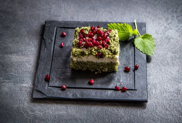 Поверхность блюда из сланца слегка отшлифована, а вырезанные по краям желобки задерживают все соки и соусы на блюде. Шероховатые края здесь уступают место фрезерованным.