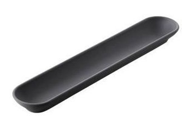 Длинное блюдо сделано в классическом черном цвете, который придает ему изысканности и элегантности.