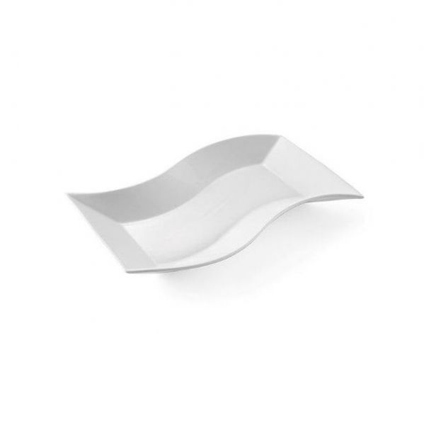 Блюдо выполнено из фарфора, белого цвета. Имеет волнистую форму.