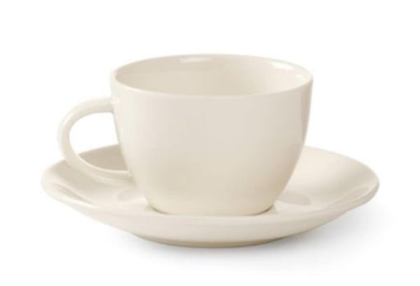 Блюдце для чашки под чай характеризуется теплым кремовым цветом, создающим более домашнюю и уютную обстановку в заведении. Идеальные пропорции толщины и веса фарфора делают его удобным для посетителя.
