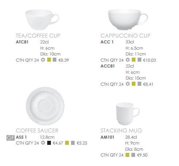 Посуда Churchill серии Alchemy Banded представлена в белом цвете с ободком на краях. Обратите внимание на ободок, он идет в трех цветах - это можно определить за первыми тремя буквами кода товара: