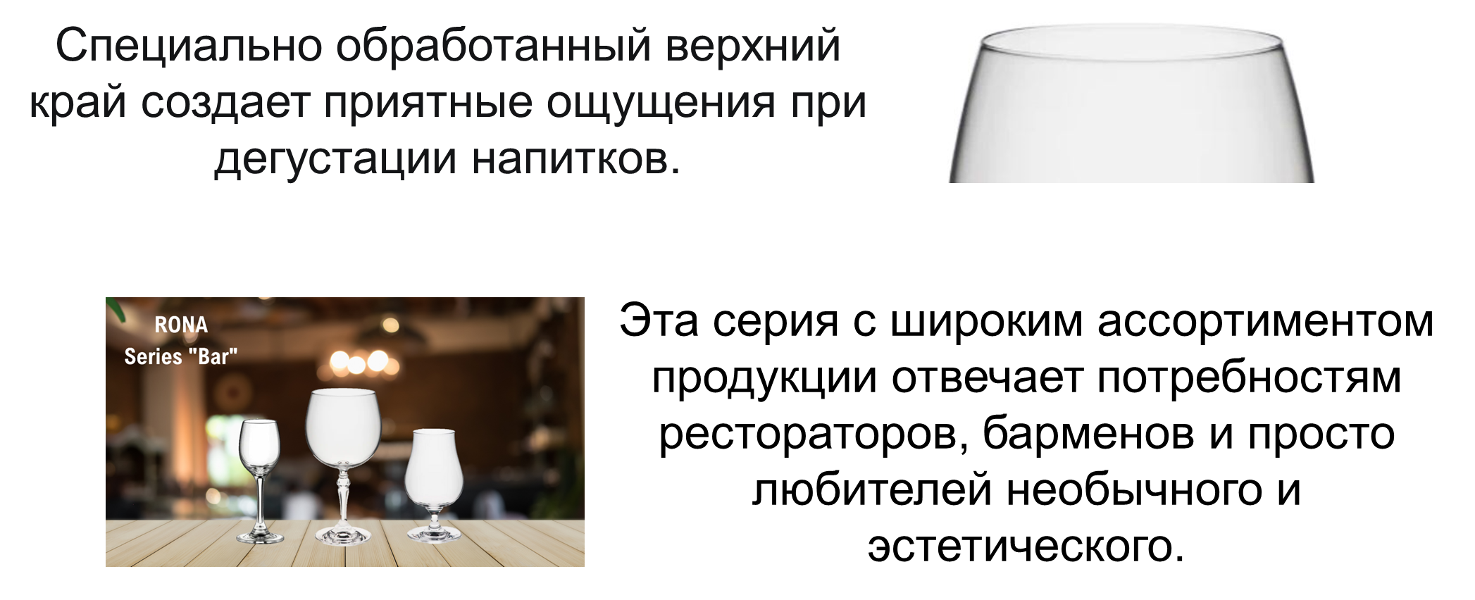 Серия “Bar" – воплощение элегантности и качества. Коллекция BAR включает набор из наиболее популярного барного стекла для настоящих профессионалов. Изящное стекло подарит вашим напиткам несравненное сияние, раскрывая их ароматы и вкусы. Каждая деталь коллекции BAR тщательно продумана, отражая стремление к совершенству и уникальности.