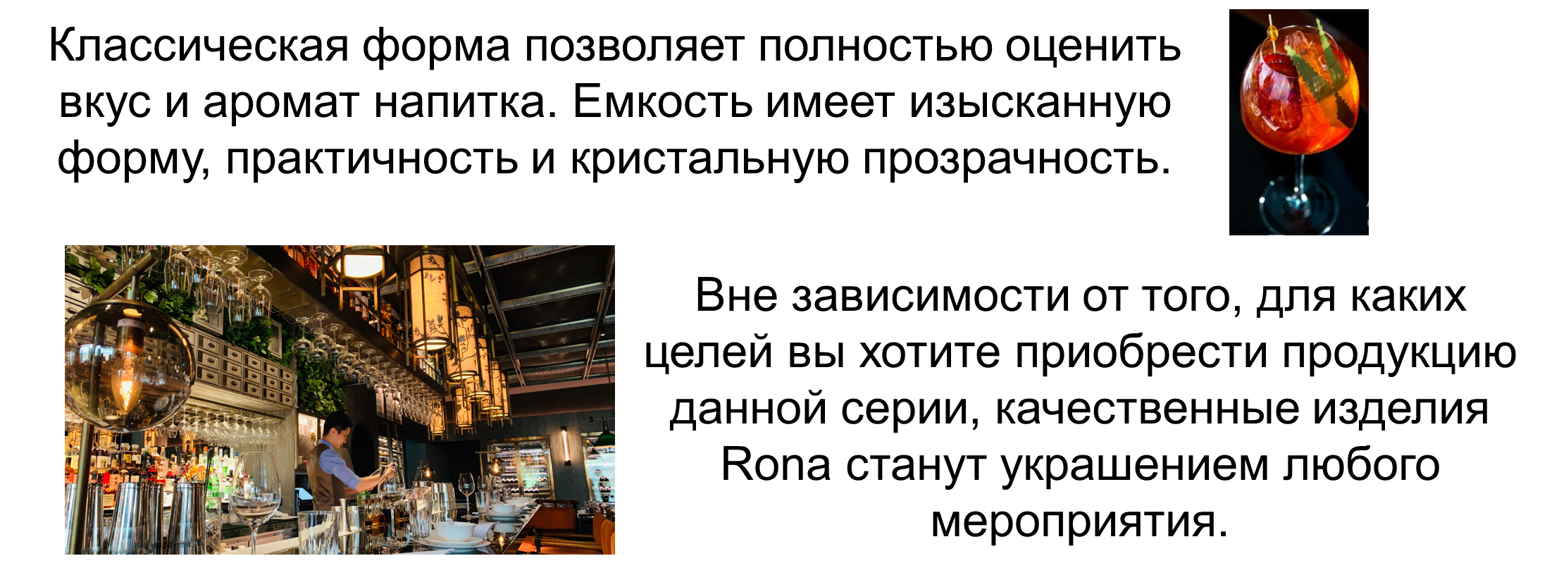 Rona – это всемирно признанный производитель профессиональной стеклянной посуды из Словакии, известный своим высоким качеством и безупречной репутацией. Коллекции барного стекла от этого европейского бренда отличаются изяществом, разнообразием декоров и форм, а также высоким качеством ручной работы. Компания RONA имеет сертификат ISO 9001, подтверждающий высокое качество продукции по европейским стандартам.