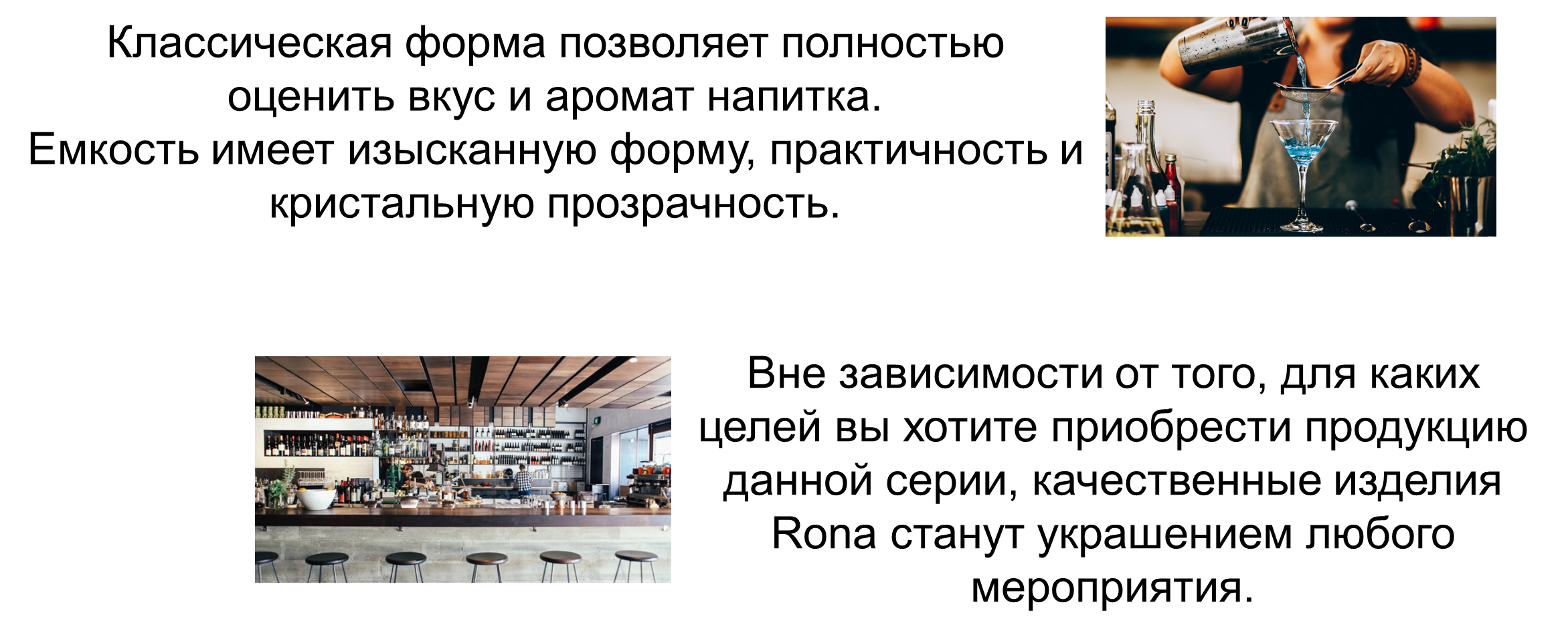 Rona – это всемирно признанный производитель профессиональной стеклянной посуды из Словакии, известный своим высоким качеством и безупречной репутацией. Коллекции барного стекла от этого европейского бренда отличаются изяществом, разнообразием декоров и форм, а также высоким качеством ручной работы. Компания RONA имеет сертификат ISO 9001, подтверждающий высокое качество продукции по европейским стандартам.