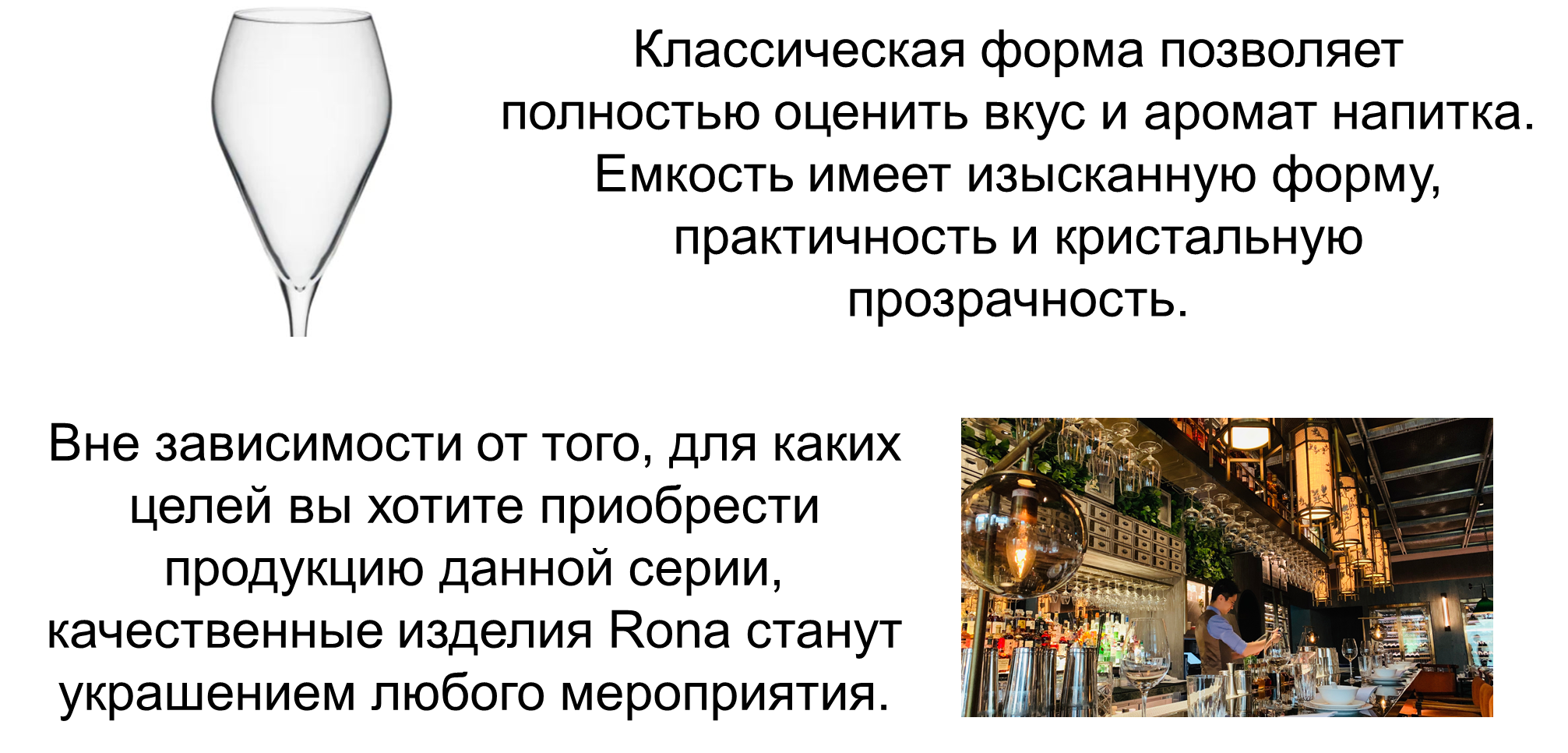 Rona – это всемирно признанный производитель профессиональной стеклянной посуды из Словакии, известный своим высоким качеством и безупречной репутацией. Коллекции барного стекла от этого европейского бренда отличаются изяществом, разнообразием декоров и форм, а также высоким качеством ручной работы. Компания RONA имеет сертификат ISO 9001, подтверждающий высокое качество продукции по европейским стандартам.