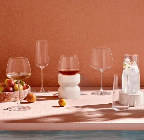 Круглый силуэт с конусообразным ободком и элегантной ножкой делает бокалы Mirage Nude удачным современным выбором для любого случая.