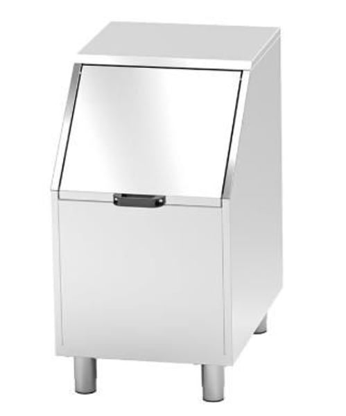 Механизм отрытия/закрытия крышки с доводчиком и фиксацией в верхнем положении, опоры из штампованной нержавеющей стали с возможностю регулировки высоты. Перфорированный лоток на дне ванны препятствует слипанию и примерзанию льда в нижней части бункера.