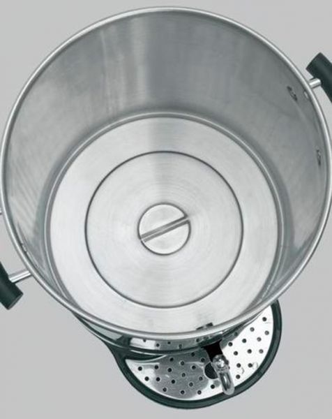 Корпус выполнен из высококачественной нержавеющей стали. Основание, сливной кран и ручки сделаны из высококачественного пластика, крышка выполнена из стекла.