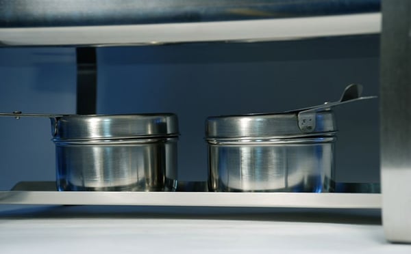 Удобная конструкция крышки – в открытом состоянии задвинута за корпус. Крышка и ручка выполнены из отполированной нержавеющей стали.