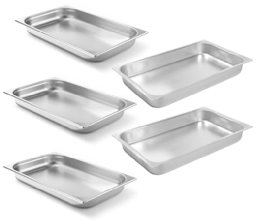 3) 3 дополнительных гастроемкости GN 1/3 глубиной 65 мм