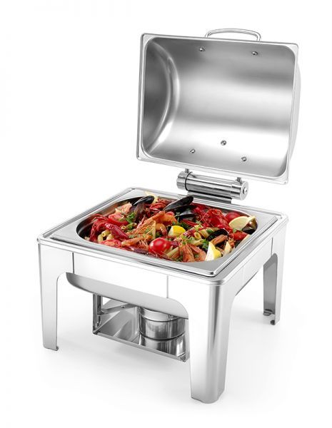 Чафиндиш для кейтеринга Hendi с зеркальной отделкой выполнен из нержавеющей стали, благодаря использованию высококачественного материала и элегантной отделке, мармиты Profi Line подчеркивают качество блюда.
