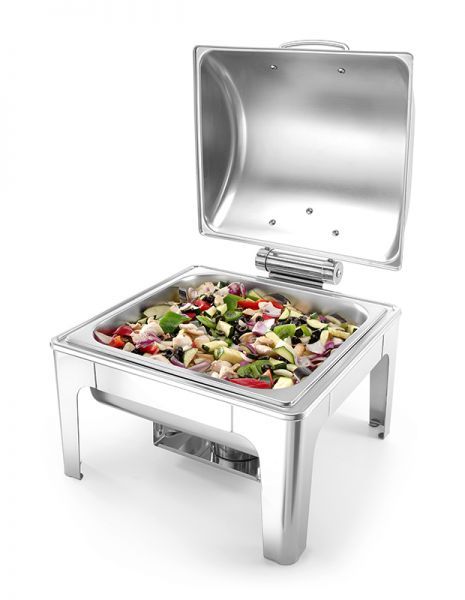 Чафиндиш для кейтеринга Hendi с зеркальной отделкой выполнен из нержавеющей стали, благодаря использованию высококачественного материала и элегантной отделке, мармиты Profi Line подчеркивают качество блюда.