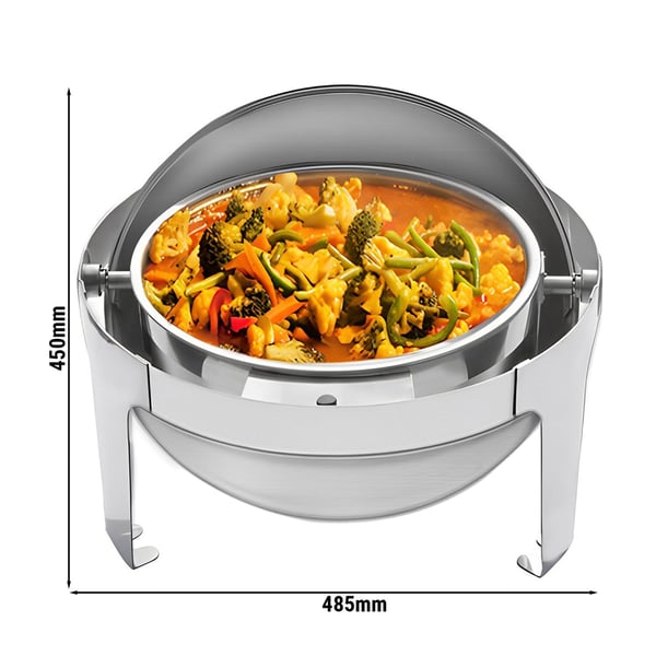 Чафиндиш GGM Gastro CDY55R предназначен для хранения и поддержки в теплом/горячем состоянии гарниров, мясных, рыбных и многих других блюд. Данный чафиндиш удобно использовать на шведских столах, поточных линиях раздачи готовых блюд или в местах с самообслуживанием. Чафиндиш имеет интересную круглую форму и относится к круглым настольным мармитам. Благодаря современному и стильному дизайну, чафиндиш привлечет внимание на каждом фуршете.