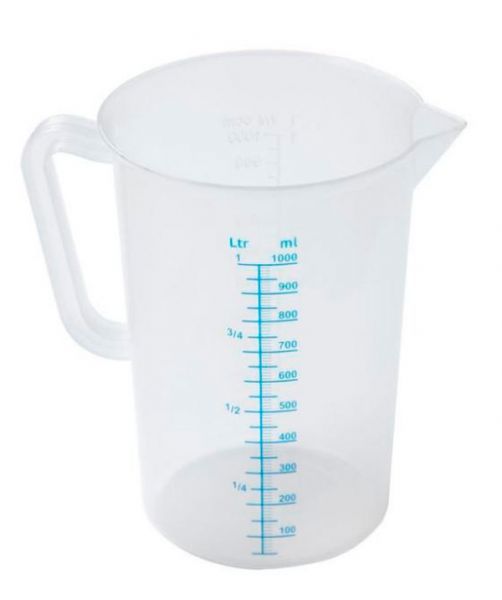 Кувшин с мерной шкалой изготавливается из полипропилена и обладает удобным носиком и эргономичной ручкой. Мерная разметка нанесена с обеих сторон в ярком цвете.
