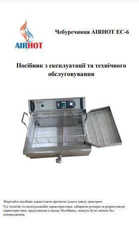 Чебуречница Airhot EC-6 предназначена для приготовления во фритюре разных продуктов: чебуреков, пирожков, мяса, пончиков. Основное отличие чебуречницы от фритюрницы состоит в широкой и неглубокой форме ванны и, соответственно, в увеличенной площади рабочей поверхности. А для выкладки только что приготовленных чебуреков есть специальный поддон для стекания масла из продукта обратно в ванную. Основное предназначение это приготовление пищи путем ее обжаривания в большом количестве растительного масла до образования хрустящей корочки.