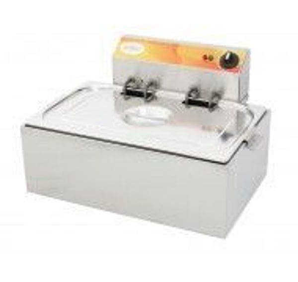 Чебуречница модели ФЧ-8, выпускается с рабочим объемом масла 8л. Может использоваться и как аппарат для пончиков после доукомплектования дозатором. На все модели чебуречниц производятся дозаторы.