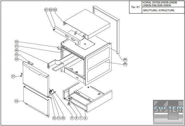 Линейка Koral Line объединяет 18 фронтальных и 5 купольных посудомоечных машин. Фронтальные модели Koral Line во многом повторяют линейку Cube Line. В отличие от моделей Cube Line C320 C320R C327 C327R C426 C426R C432 C432R, у аналогов из линейки Koral Line (207DB 207RDB 205DB 205RDB 208DB 208RDB 209DB 209RDB 450DB 450TDB 540DB 560DB 630DB) есть встроенные дозаторы моющего и ополаскивающего средств, нагнетающий и сливной насосы (встроенные) а также термостоп.