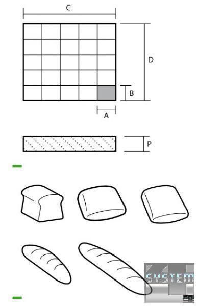 Прямоугольный автоматический тестоделитель, позволяющий разрезать сырое тесто на маленькие и большие порции одного веса и формы.