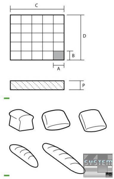 Прямоугольный полу-автоматический тестоделитель, позволяющий разрезать сырое тесто на маленькие и большие порции одного веса и формы.