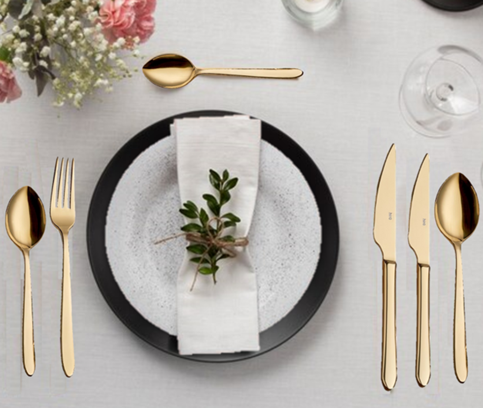 Столовые приборы GOLD SHINE EGE выполнены из высококачественной пищевой нержавеющей углеродистой стали 18/10 (содержание хрома – 18%,