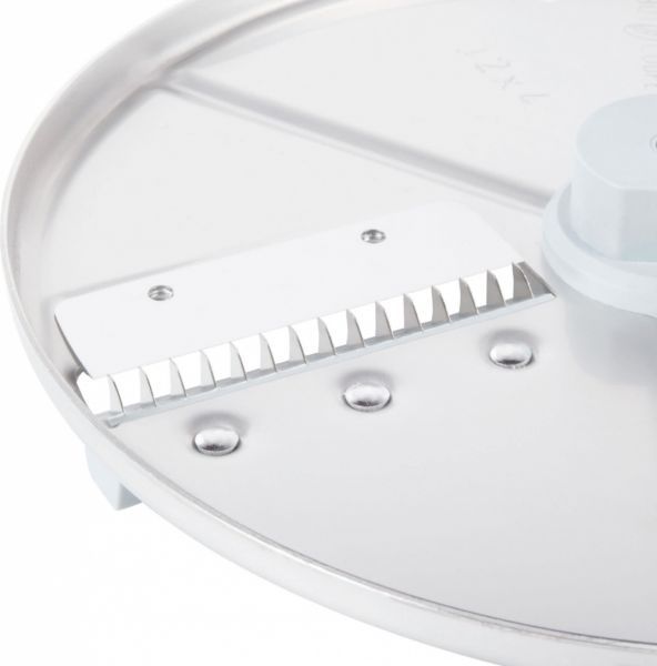 Подойдет для нарезки морковки, огурцов, редиски, сельдерея, кабачков для приготовления закусок, салатов, десертов, первых и вторых блюд. Помещается в рабочую камеру профессиональной овощерезки на вал двигателя. После использования легко снимается для очистки без использования инструментов. Для очистки, диск нужно поместить под струю холодной воды. Диск изготовлен из алюминия, режущие ножи - нержавеющая сталь.
