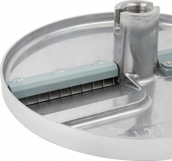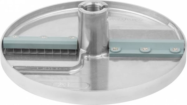 Подойдет для нарезки морковки, огурцов, кабачков, свеклы для приготовления закусок, салатов, десертов, первых и вторых блюд. Помещается в рабочую камеру профессиональной овощерезки на вал двигателя. После использования легко снимается для очистки без использования инструментов. Для очистки, диск нужно поместить под струю холодной воды. Диск изготовлен из алюминия, режущие ножи - нержавеющая сталь.