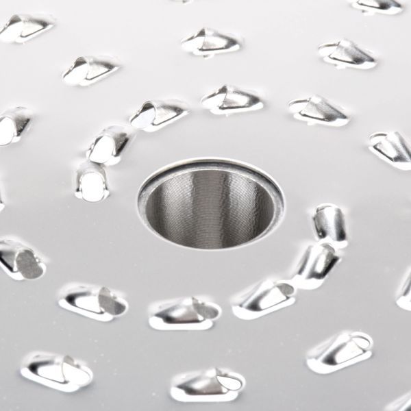 Подойдет для нарезки стружкой средней величины свеклы, капусты, морковки, фруктов, сыра, варёных яиц, шоколада и других продуктов для приготовления салатов, десертов, первых и вторых блюд. Помещается в рабочую камеру профессиональной овощерезки на вал двигателя. После использования легко снимается для очистки без использования инструментов. Для очистки, диск нужно поместить диск под струю холодной воды. Диск изготовлен из нержавеющей стали.
