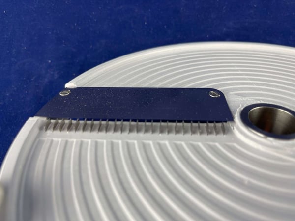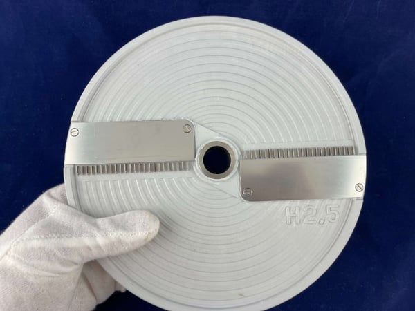 Помещается в рабочую камеру профессиональной овощерезки на вал двигателя. После использования легко снимается для очистки без использования инструментов.